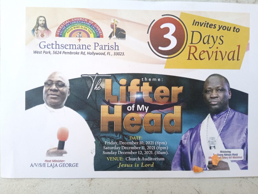 CELESTIAL CHURCH OF CHRIST, GETHSEMANE PARISH, HOLLYWOOD, FLORIDA